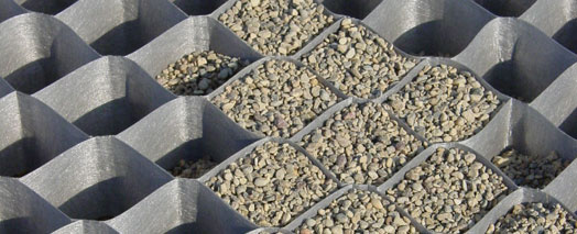 Diese Geotextilienstruktur dient zur Begrenzung von Schotter,